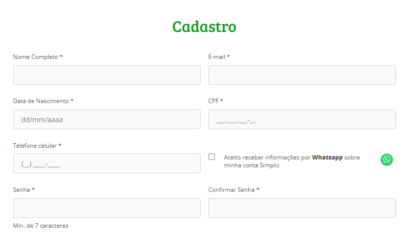 - Complete o formulário com suas informações pessoais e escolha uma senha para acessar sua conta;