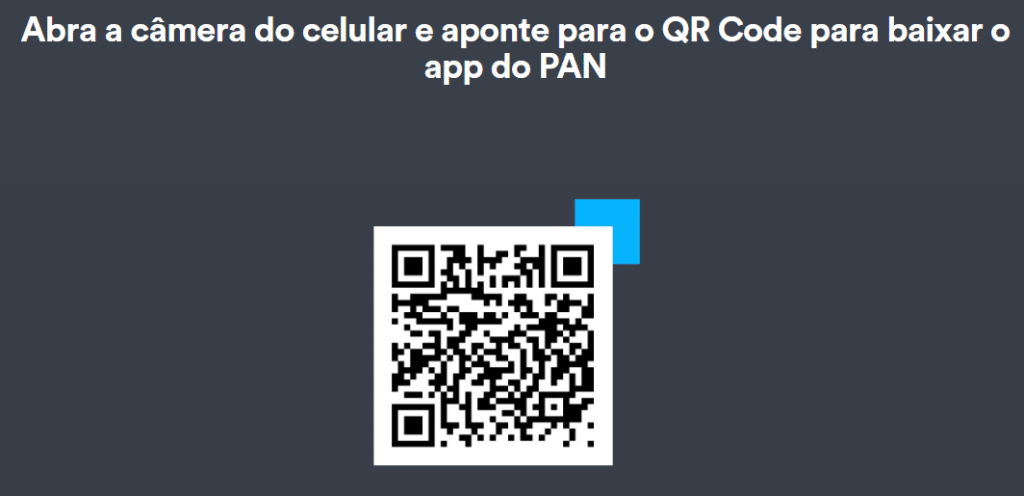 - Em seguida, baixe o aplicativo do Banco Pan usando o QR Code na página;